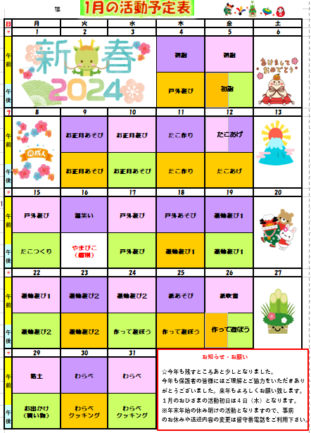 1月活動予定表